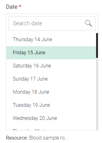 Depending on how your system is configured, the resource may be shown beneath the list, once a time has been selected, in the next step.