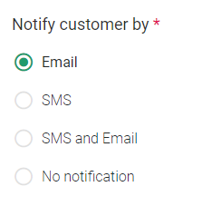 If you select for example SMS, and there is no phone number entered for the customer, a popup window will be displayed:
